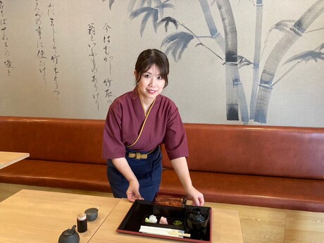「鰻が好きで応募しました(笑)。お客様から『美味しかったよ!』と声をかけてもらうのが何よりの喜びです。常連さんと顔なじみになって、ちょっとしたおしゃべりも楽しみの一つですね。無理なく働ける環境なので、これからもここで頑張りたいです!」